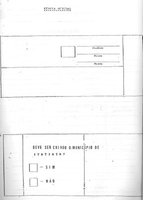 Artigo 3º - O plebiscito será realizado através de cédula oficial, conforme modelo parte integrante destas INSTRUÇÕES, com os seguintes dizeres: